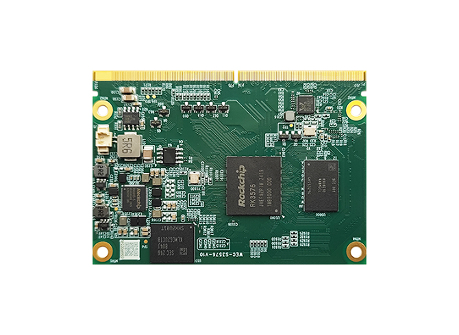 采用瑞芯微RK3576處理器,4核Cortex-A72+4核Cortex-A53,SoC集成了的NPU可提供高達6 Tops的AI算力,支持LPDDR4x內存,最高達16 GB;eMMC存儲最高達256GB,支持HDMI, MIPI, eDP等多種顯示;2路PCIe 2.0  ×1;4路USB,1路SATA 3.0,6路UART,23路GPIO;支持工業級寬溫設計。