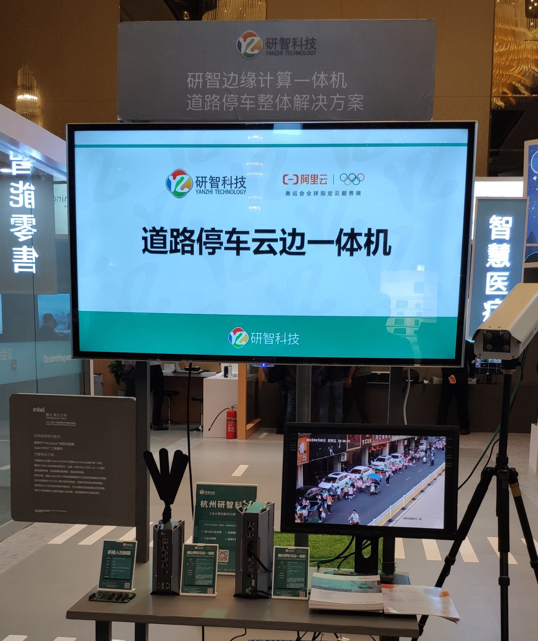 作為intel中國區重要的合作伙伴,杭州研智科技應邀出席了本屆大會,并在現場向嘉賓展示了由研智科技和阿里云聯合打造的邊緣AI視頻應用產品——道路停車云邊一體機。